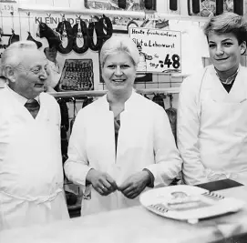 1978 Übernahme der Metzgerei durch Rolf Ahsenmacher. Auch seine Frau, Ursula Ahsenmacher (geb. Stölzgen) arbeitet im Verkauf mit.